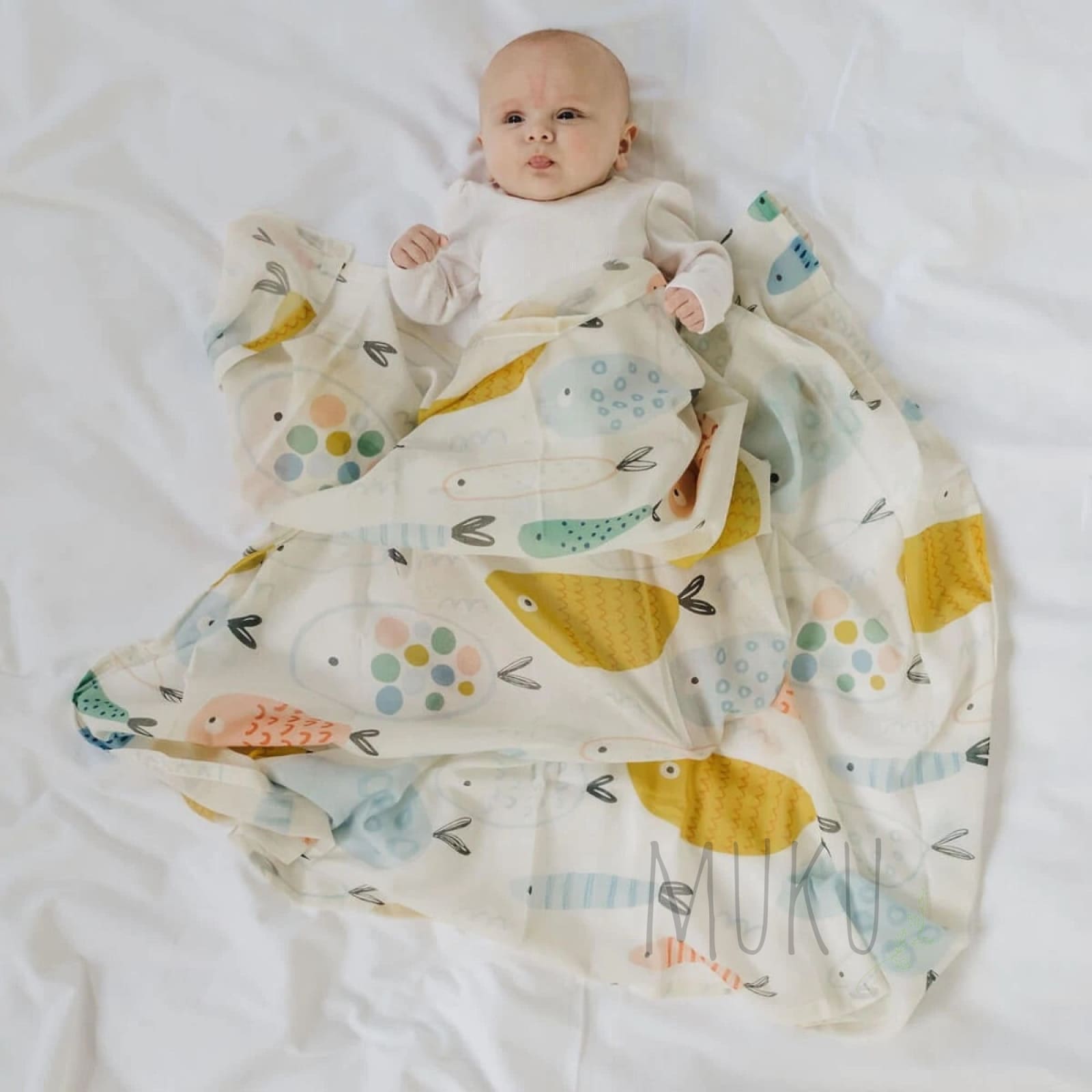 This muslin wrap is a versatile baby item. Featuring our cute owl motif it is gender neutral and can be used for swaddling, burping or a breast feeding cover.