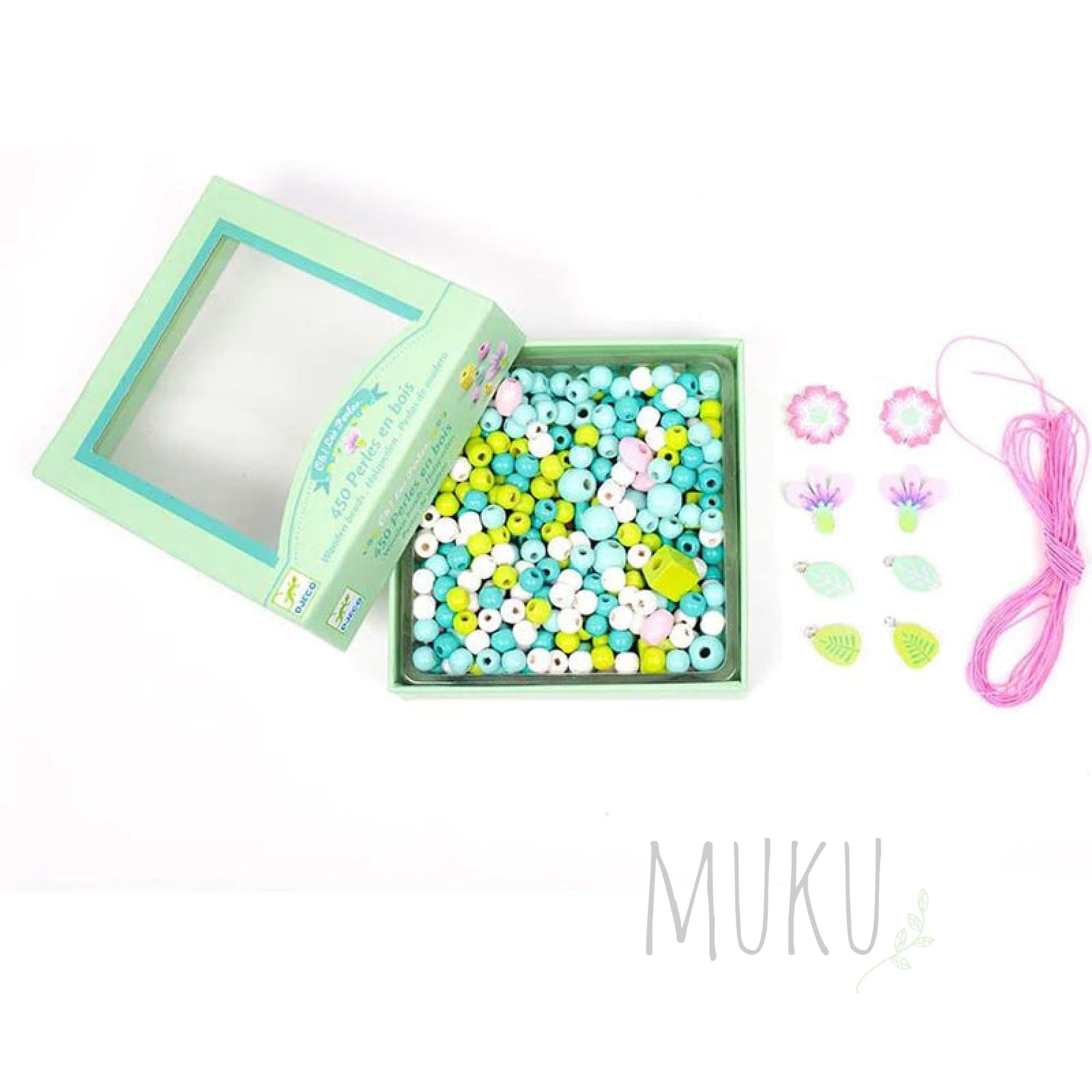 Packaged set of 450 beads with pretty leaf and flower charms. Excellent threading activity to develop fine motor skills and explore sequence and design.